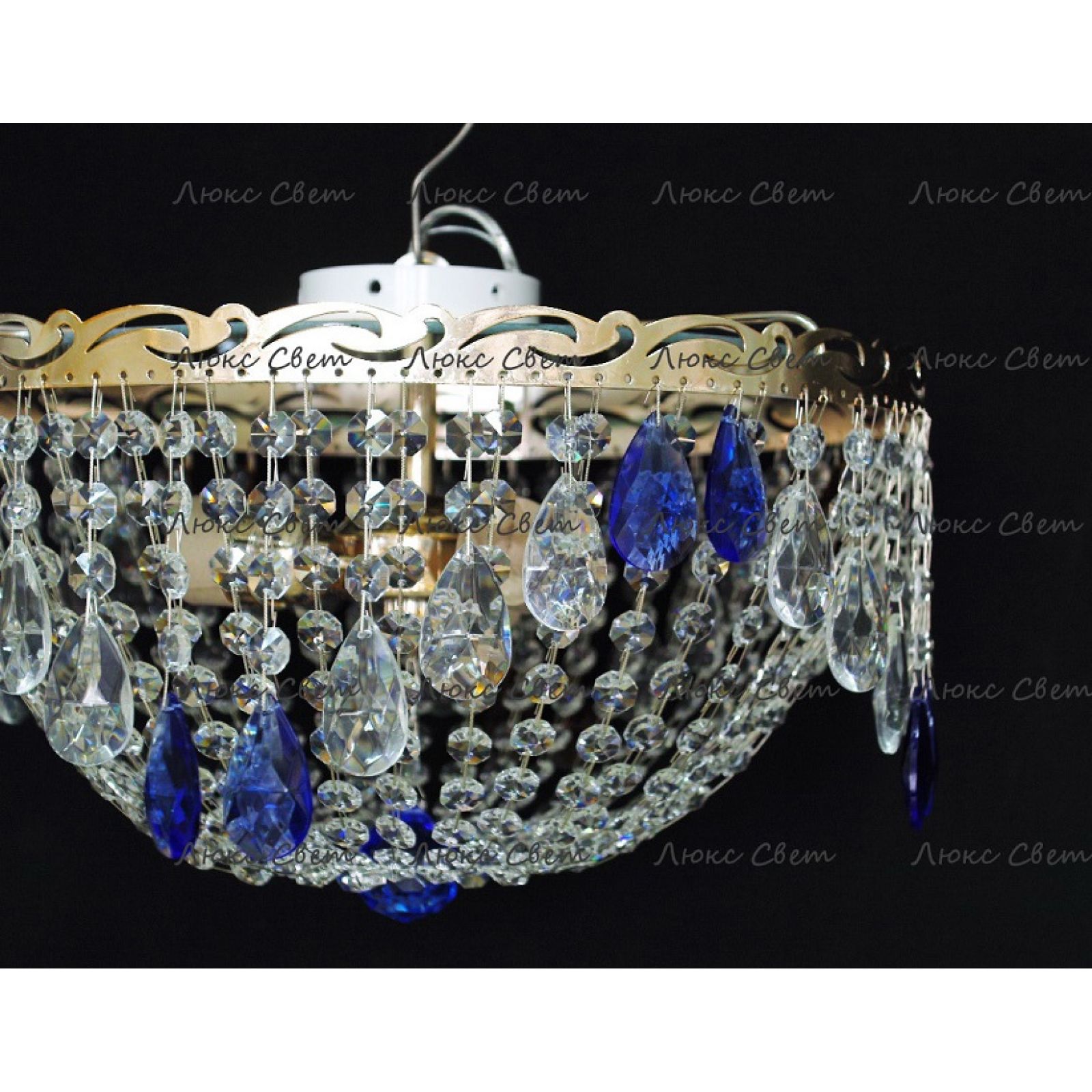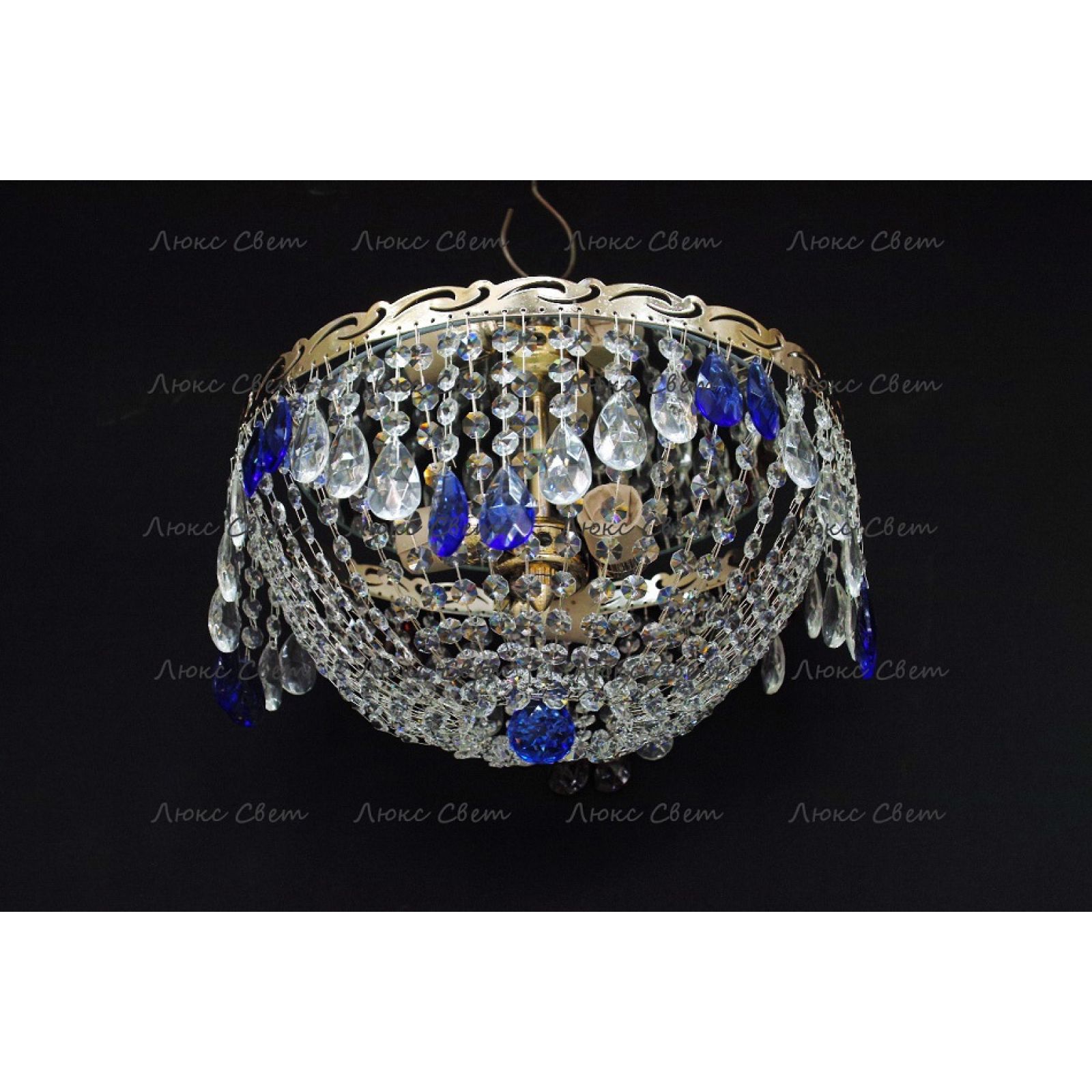 Потолочная люстра Анжелика журавлик синего цвета от российского производителя светильников Гусь-Хрустальный идеально подойдет для освещения зала, гостиной, спальни. Люстра выполнена в классическом стиле с изящными хрустальными подвесками. Арматура светильника выполнена из металла, цоколь - E27. Цвет арматуры - золотой или серебристый, на выбор. В основании люстры расположено зеркало, которое отражает свет и усиливает освещенность комнаты.