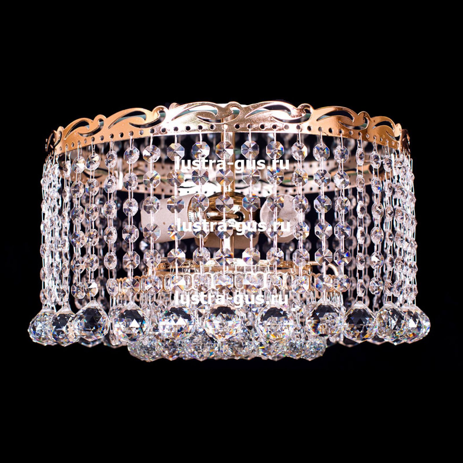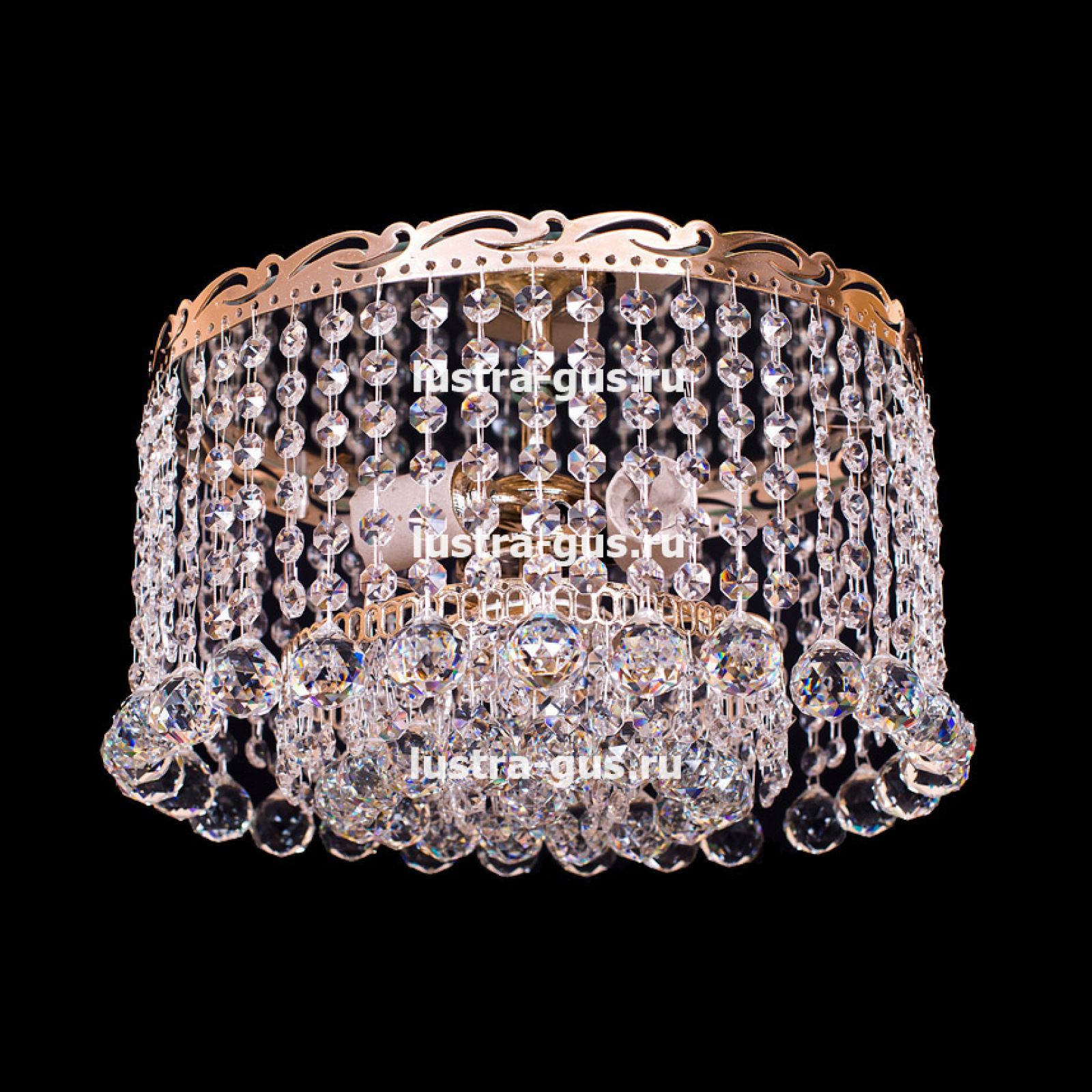 Потолочная люстра Анжелика 3 лампы + низ № 2 от российского производителя светильников Гусь-Хрустальный идеально подойдет для освещения зала, гостиной, спальни. Люстра выполнена в классическом стиле с изящными хрустальными подвесками. Арматура светильника выполнена из металла, цоколь - E27. Цвет арматуры - золотой или серебристый, на выбор. В основании люстры расположено зеркало, которое отражает свет и усиливает освещенность комнаты.